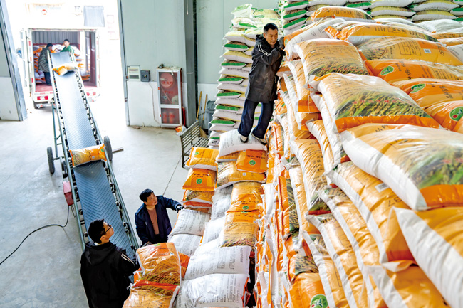 3月7日,在位於金華市婺城區長山鄉的一家種業公司,工作人員正將一袋袋早稻種子從倉庫搬上貨車,發往全省各地備春耕。 “去年收購的種子達到500萬公斤。…
