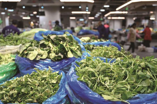 近日,在嘉興市區荷花堤市集,馬蘭頭、莧菜、春筍等各類時令春菜搶“鮮”上市,吸引了不少市民前來選購,鮮嫩水靈的春菜讓居民的菜籃子裡裝滿了“春天的味道”。(張啟帆)。…