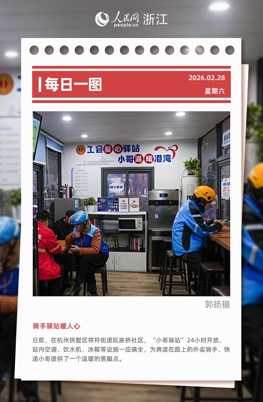 人民網杭州2月27日電 (記者郭揚、張麗瑋)日前,在杭州市拱墅區祥符街道阮家橋社區,“小哥驛站”24小時開放,站內空調、飲水機、冰箱等設施一應俱全,為奔波在路上的外賣騎手、快遞小哥提供了一個溫暖的落腳點。 作為杭州著力打造“小哥友好城市”的生動實踐,該驛站不僅內部設施完善,外部還配套設置了40個“小哥”電動車換電櫃和120個“小哥”專屬停車位。…