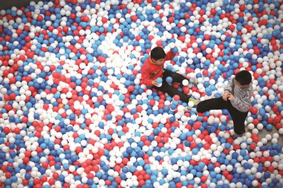 2月27日,在嘉興南湖區一商場內,孩子們抓住寒假的“尾巴”,在海洋球中盡情地玩耍。據了解,嘉興市中小學、幼兒園將於3月4日報到、開學。…
