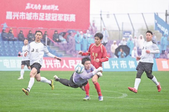 3月1日,嘉冠聯賽第七輪在嘉興秀洲區王江涇大運河體育文化園火熱進行,最終秀洲隊、平湖隊、桐鄉隊、南湖隊晉級四強。圖為嘉善隊和海鹽隊的比賽,雙方最終2:2戰平。…