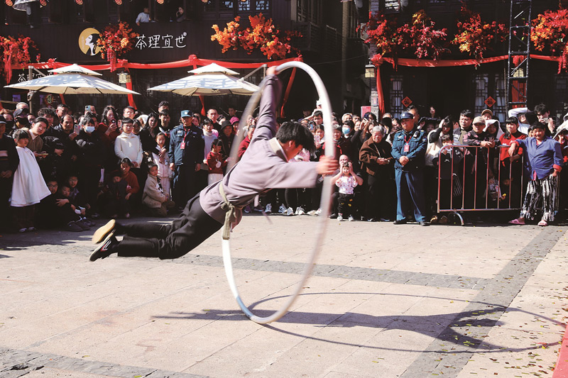 2月20日,台州路橋十裡長街上,市民、游客駐足觀看表演。大年初四,市民、游客游興依然不減,大家逛古街、賞非遺、品美食,樂享新春假日。…