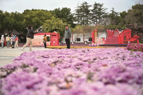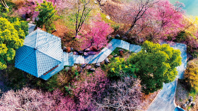春節期間,金華市金東區赤山公園內,大片梅花綻放,花瓣粉紅、花蕊金黃,將公園裝點得生機勃勃,吸引市民前來賞花拍照、打卡留念,盡享假期清雅生活。(傅俊)。…