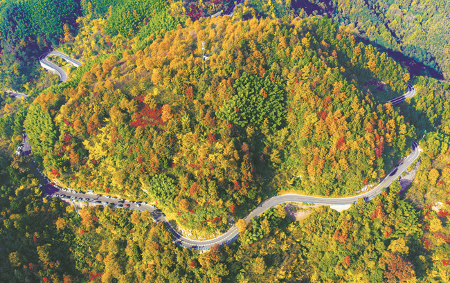 深秋的绍兴嵊州市三江街道缸山村,乡村公路被秋意铺满。两侧林木褪去绿装,枝叶染黄泛红,斑斓色彩沿路延展,勾勒出静谧悠远的秋日图景。…