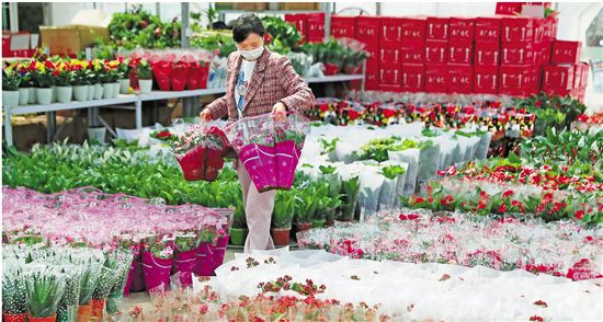 4月8日,杭州市萧山区一花卉市场,市民们前来选购鲜花、绿植。随着气温回暖,采购各类鲜花、苗木的人多了起来,市场内的销售情况也逐渐回暖。魏志阳 摄