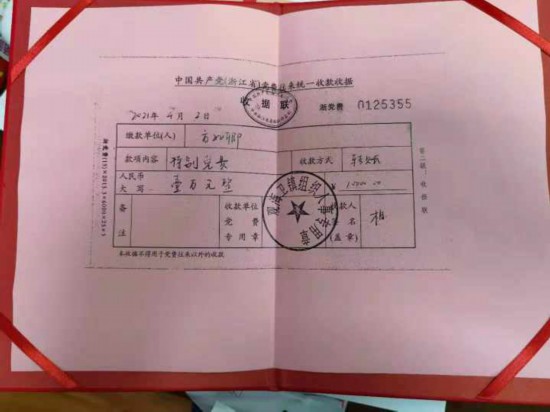 “爸爸,今天是一个特别的日子,我们代表您向党组织缴了1万元的党费,这也是您生前的遗愿,要在中国共产党建党100周年之际,代您上缴这最后一笔党费。”4月2日下午,方雅萍与丈夫徐群将父亲生前留下的这笔钱,交到宁波慈溪观海卫镇政府工作人员的手中,完成了9年前已经去世的老党员方如卿的遗愿。