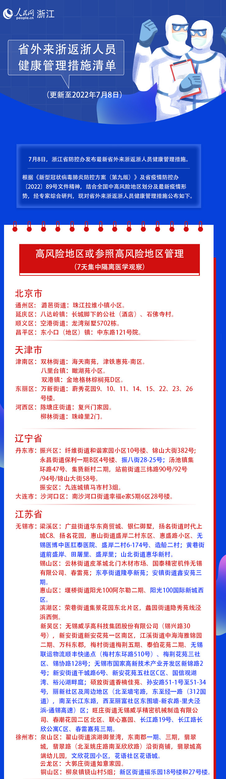 省外来浙返浙人员健康管理措施(7月8日更新)