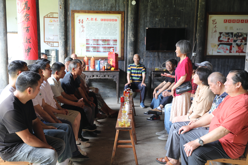老知青在文化礼堂与村干部等亲切交谈。松阳县委宣传部供图
