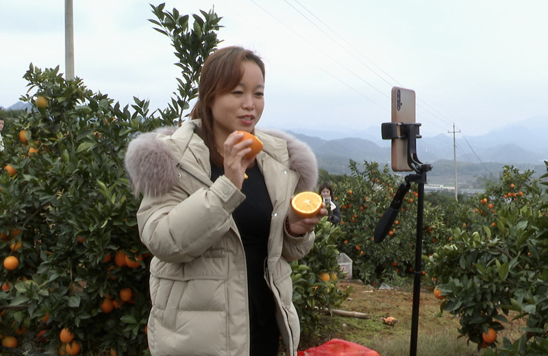 曹莉萍在脐橙上市时节带货直播。松阳县委宣传部供图