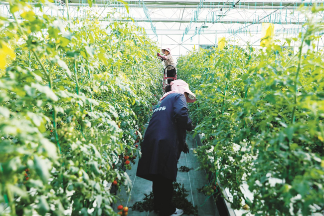 近日,农技人员对雾耕大棚的蔬菜进行日常养护。在绍兴市越城区东湖智祚农谷,现代化农事管理中心的大数据屏实时监测温湿度等参数,雾耕大棚借自动化系统创造适宜生长环境,打破传统农业季节限制,实现四季丰收。(严培谕)