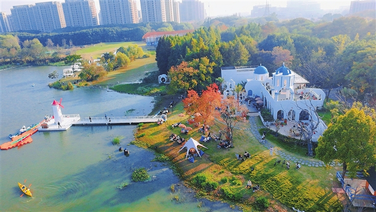 连日来,湖州西山漾湿地公园成了市民休闲的好去处。人们品咖啡、打卡拍照,在湖光树影交织中,邂逅湿地浪漫。(施莉娜)