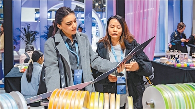 十一月二十五日,以“浙里跨境 贸享全球”为主题的首届中国(浙江)跨境电商进出口交易会在义乌国际博览中心开幕。图为当日,客商在交易会上选购商品。